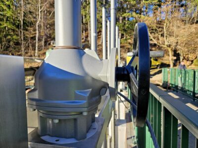 Diese ermöglichen eine deutlich flexiblere Regulierung des Wasserstands im Hüttenteich. Im Zuge des Umbaus der Wehranlage wurde zudem das bestehende Holzgeländer gegen ein Füllstabgeländer aus Stahl ausgetauscht.
