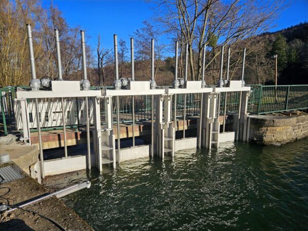 Bei der neuen Wehranlage handelt es sich um eine Sonderkonstruktion, bestehend aus vier Wehrsegmenten mit je zwei unabhängig voneinander bedienbaren Schütztafeln.